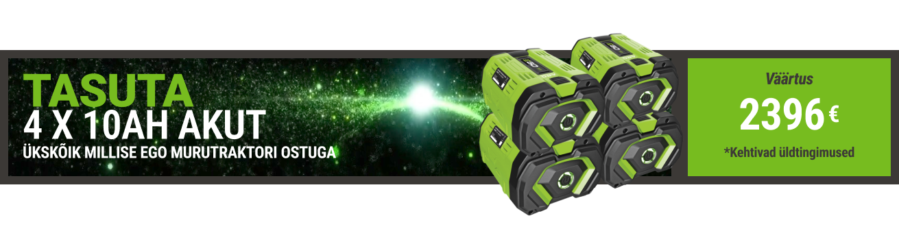 TASUTA 4 x 10Ah akut ükskõik millise EGO murutraktori ostuga - maksimaalne võimsus ilma lisakuluta!